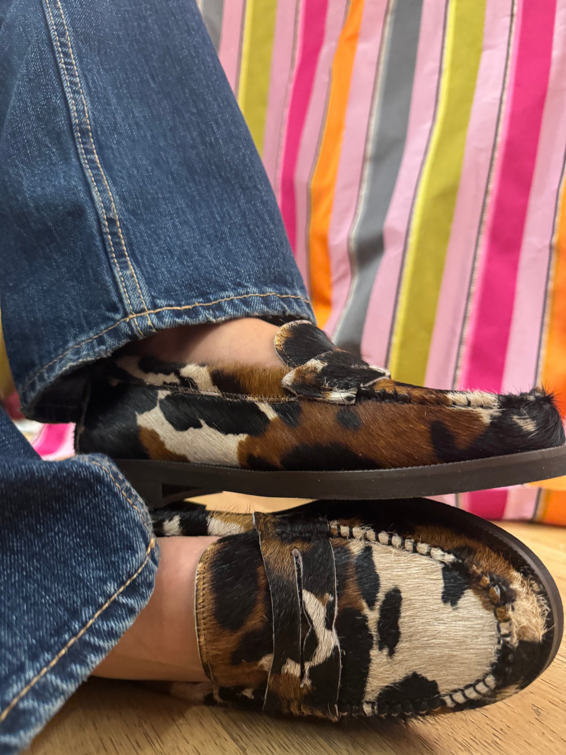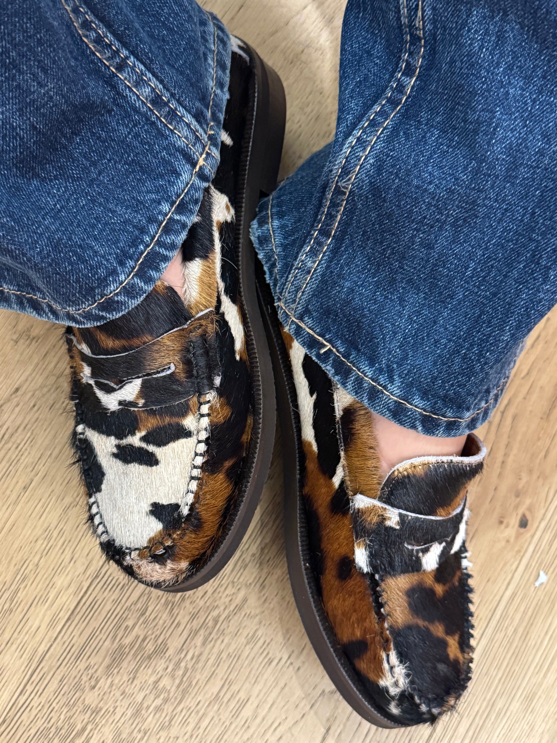 Questa è la fantasia ispirata al mondo animale che fa tendenza: il " muccato" nel 2025 è cool. Mocassino realizzato artigianalmente in Italia. Fodera e plantare estraibile in pelle. Fondo in gomma con tacco alto 2 cm. Pianta larga e comoda. Calzata regolare.