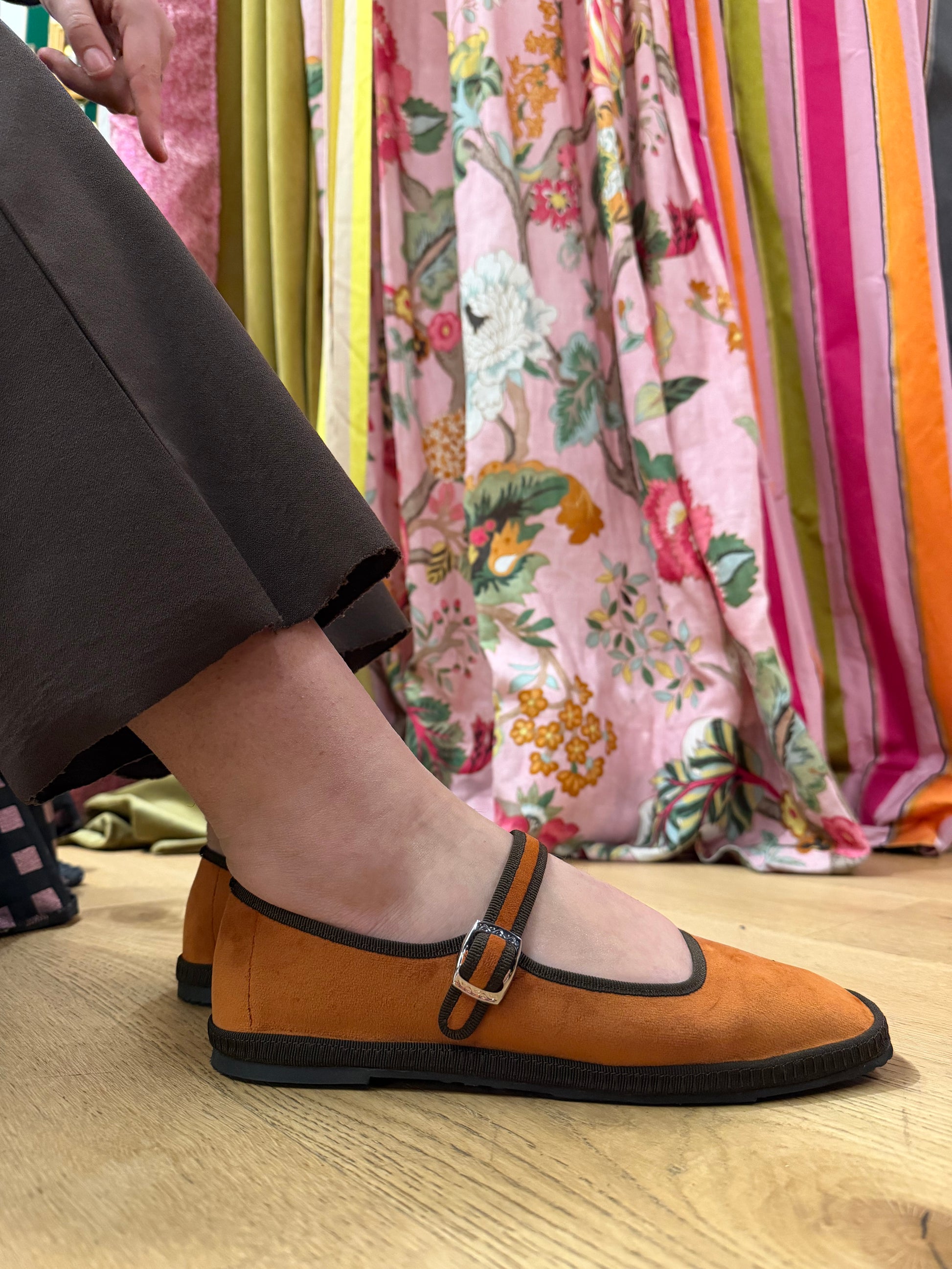 Sono le scarpe flat più chic che si possono indossare nella mezza stagione e non solo. Le friulane, iper chic e sempre di tendenza. Variante realizzata in velluto arancione con bordo in contrasto marrone. Fodera in tessuto, sottopiede in velluto. Fondo in gomma cucito a mano con tacco di 1,5cm. Calzata leggermente piccola. Prodotto artigianale italiano.