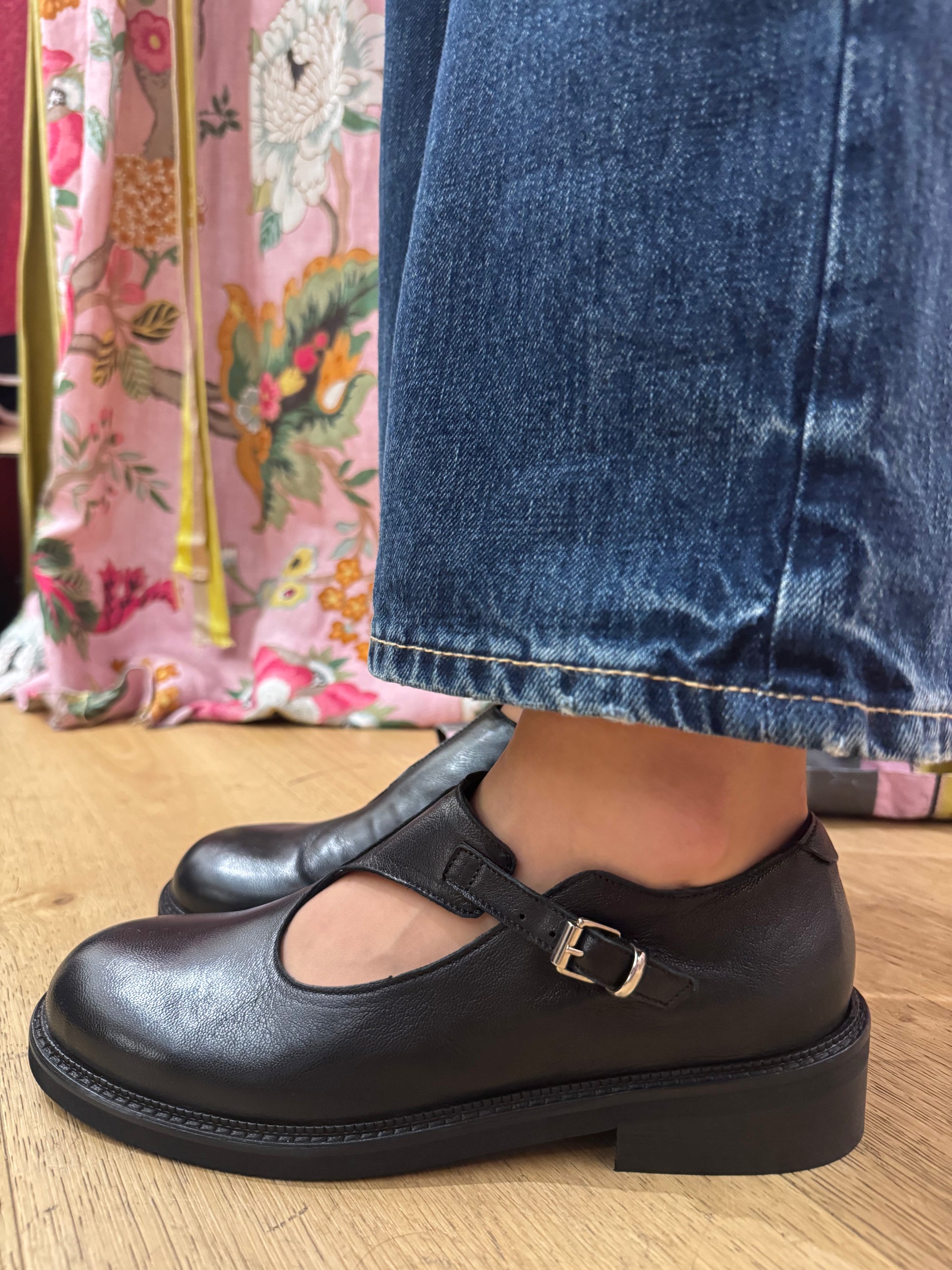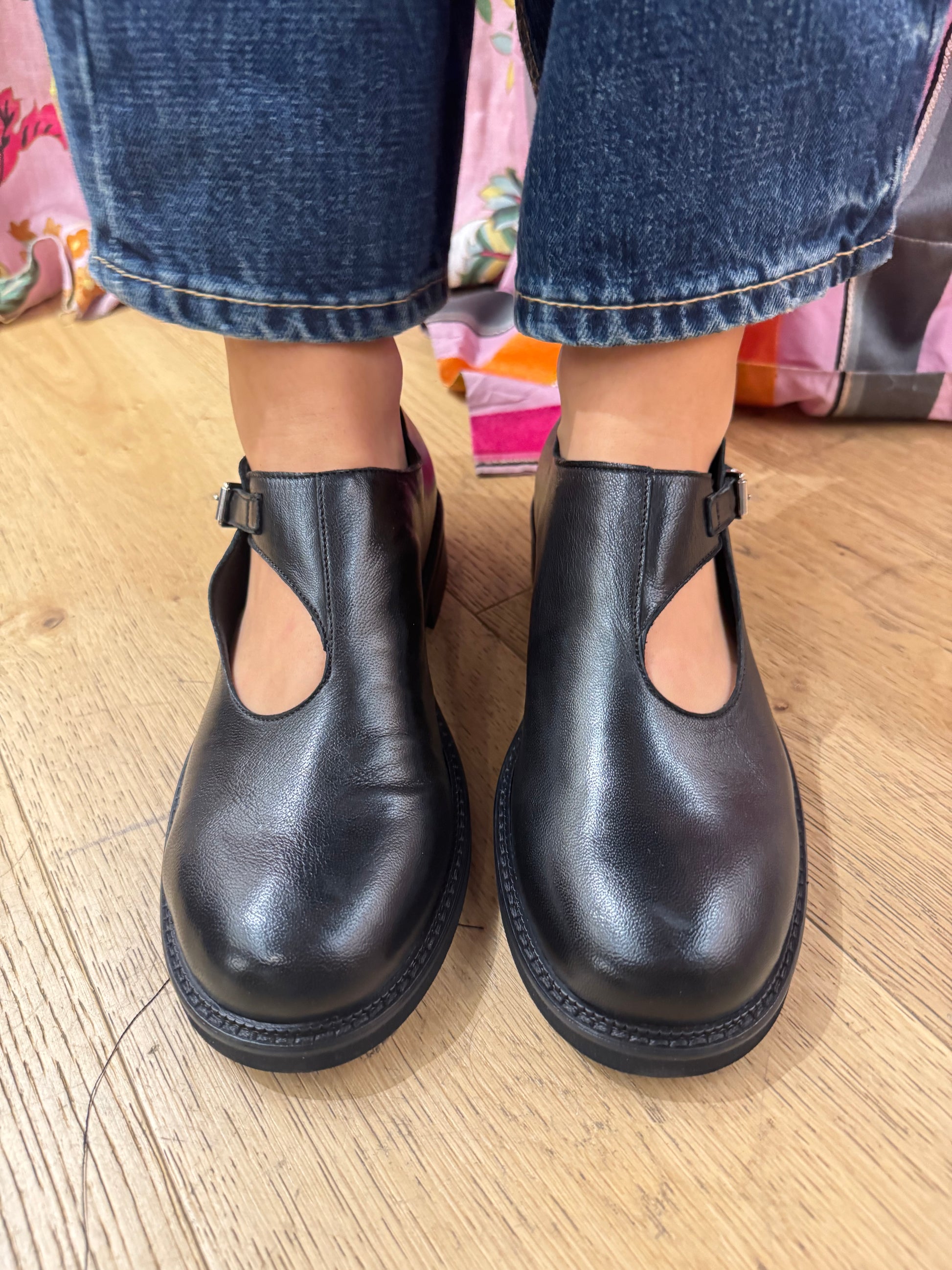 Nero, come lo stile senza tempo. Scarpe basse con fibbia, realizzate in pelle e fatte artigianalmente in Italia. Fodera e sottopiede in pelle. Pianta larga e comoda. Fondo in gomma con tacco alto 2,5 cm. Calzata abbondante.